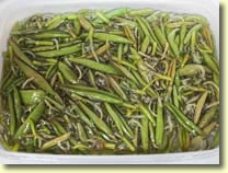 | 水の多いところに生息する山菜で、東北地方では古くから救荒食物として重視されてきました。わらび同様、アク抜きしてから、炒め物、佃煮、胡麻和え、煮物などに。 |