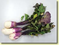 日野菜かぶの変異種。ほのかな甘みとほろ苦さ、アクも少々あるのが特徴。漬物向きですが、水分が少ないため、おろしてみぞれ鍋などもおすすめ。